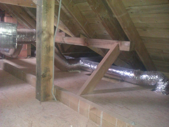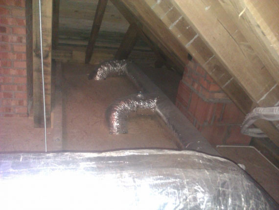 - dom jednorodzinny, ul. Krokusów w Warszawie, powierzchnia 180 m2, centrala wentylacyjna z wymiennikiem krzyżowym o wydatku 600 m3/h, centrala posadowiona na poddaszu budynku, orurowanie rozprowadzone po poddaszu i w przestrzeniach między krokwiami